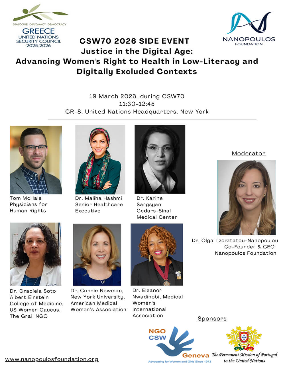 “Justice in the Digital Age: Advancing Women’s Right to Health in Low-Literacy & Digitally Excluded Contexts” with , CEO & Co-Founder of the Nanopoulos Foundation’s Digital Health Literacy & Policy Hub!